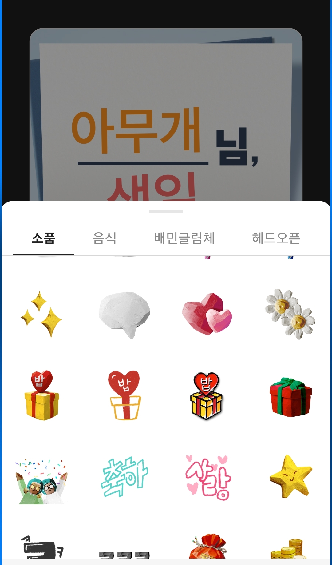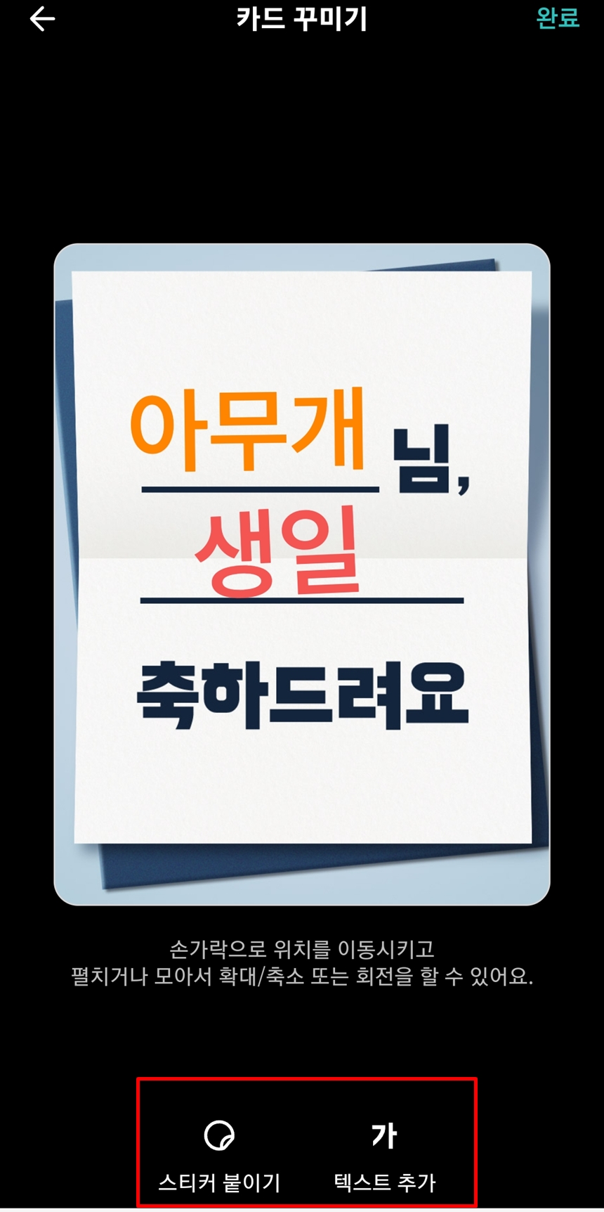 4. 메시지에 스티커와 글씨를 원하는 대로 넣을 수 있습니다.